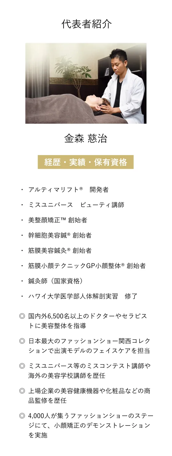 創業53年、累計9.8万件の施術実績で培った経験と、磨ききった技術があってこそ実現できる、唯一無二のリフトアップ方法です。
